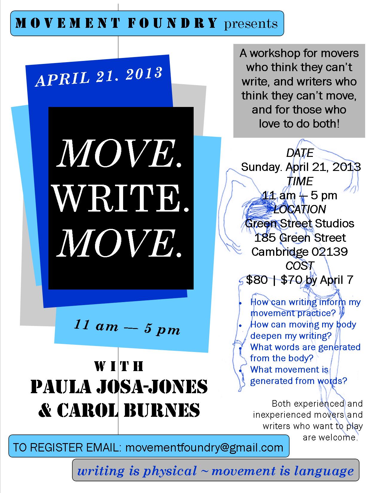 - Recent US workshop exploring movement and writing. Having incorporated movement in my writing workshops for years, it is exciting to find Paula to collaborate with. Look for a followup workshop in the Fall.
